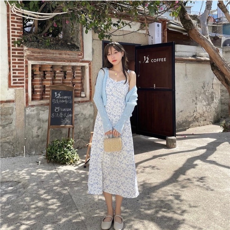 Set đầm hoa 2d kèm khoác free ship